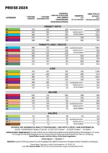 Ihre Wiederaufnahme erlebt die Produktion „Parsifal“ unter Einsatz der „Augmented Reality-Erweiterten Realität" ab 27. Juli 2024 mit Pablo Heras- Casado am Pult. Der „Ring des Nibelungen“ in der Regie von Valentin Schwarz, musikalisch geleitet von Philippe Jordan, wird ab 28. Juli und ab 20. August 2024 gespielt. Für den Gesamtzyklus bieten wir Ihnen einen Frühbucherpreis bis 2. Dezember an, ab 3. Dezember wird unser Online-Sofortkauf beginnen, bei dem es die Möglichkeit geben wird, auch die Einzelwerke des Ring des Nibelungen zu erwerben.