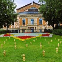 Das diesjährige Projekt des Künstlers Ottmar Hörl; leider waren bis zum 10.08. alle der 100 vergoldeten Wagner-Figuren vor dem Fest-Spielhaus gestohlen. |