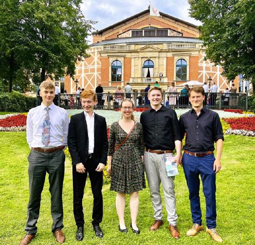 Mit diesen jungen Leuten waren 2023 vom Vorstand Juliane Berg, Constanze Schwertner und Dr. Albin Lütke, gemeinsam mit der Ehrenvorsitzenden Odina Diephaus beim Fliegenden Holländer, Parsifal und im Tannhäuser; dazu noch beim Bayreuther Stipendiatenkonzert.